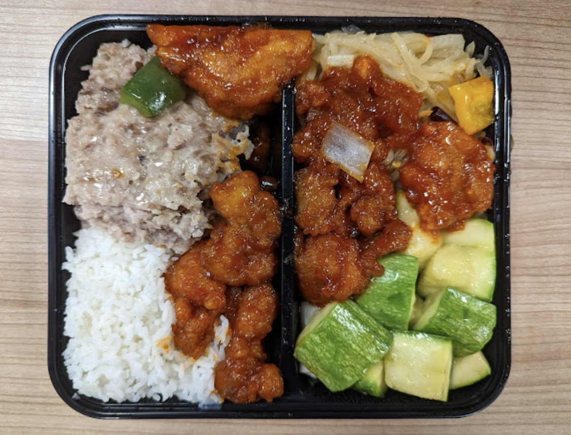 「両送飯」の真骨頂は、圧倒的なバリエーションと「選択の自由」にある。定番の酢豚や豚肉のスパイス揚げ、蒸し卵、季節の野菜炒めなどをはじめ、食欲をそそるおかずが並ぶ。3種類ではなく「2種類」という選択は、コストを抑えつつ栄養バランスを確保し、かつ満足感を得られる絶妙な境界線なのだ。