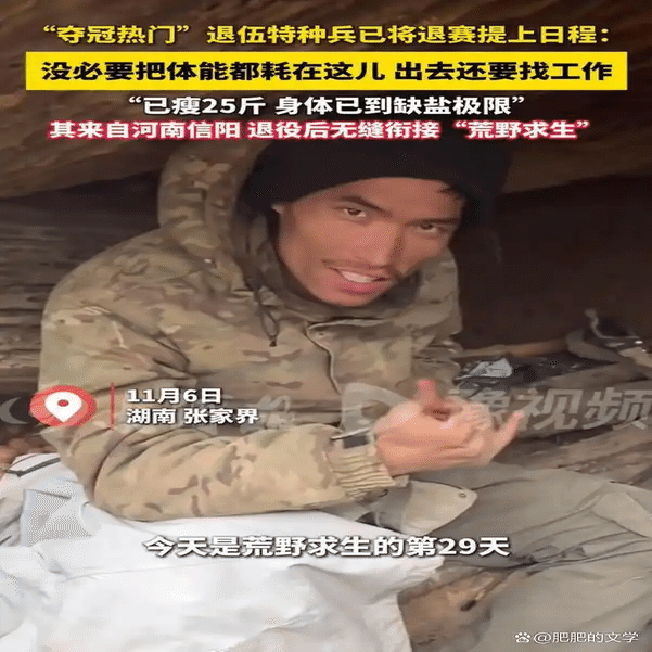 この大会で最も注目を集めているのが、現在唯一残っている女性選手の「冷美人」こと楊朝芹さんだ。雲南省出身で、大会前はAI業界で働く都市部の会社員だったが「女性でも絶体絶命の状況で生き残れることを証明したい」という強い意志のもとで参加。サバイバル経験は皆無でのチャレンジだったが、独学で火起こしや野草採取のスキルを習得し、体重を大きく減らしながらも勝ち残っている。