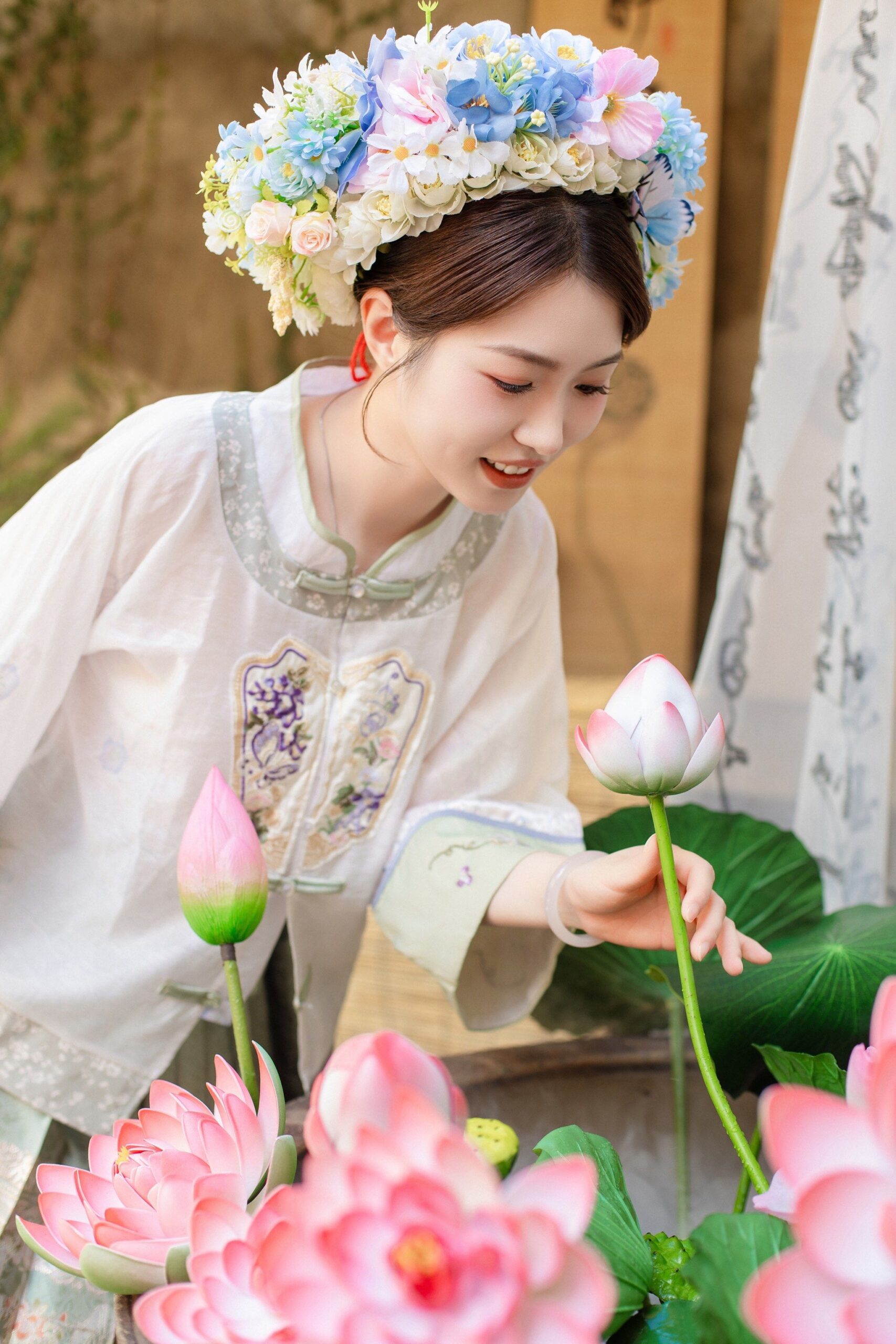 中国の人気女優、趙麗穎(チャオ・リーイン)や毛暁彤(マオ・シャオトン)が、頭いっぱいに色とりどりの花を飾った姿をSNSに投稿する。するとその写真は瞬く間に拡散され、「自分もやってみたい」という投稿が次々に続く。ここ数年、中国ではそんな光景が繰り返されている。