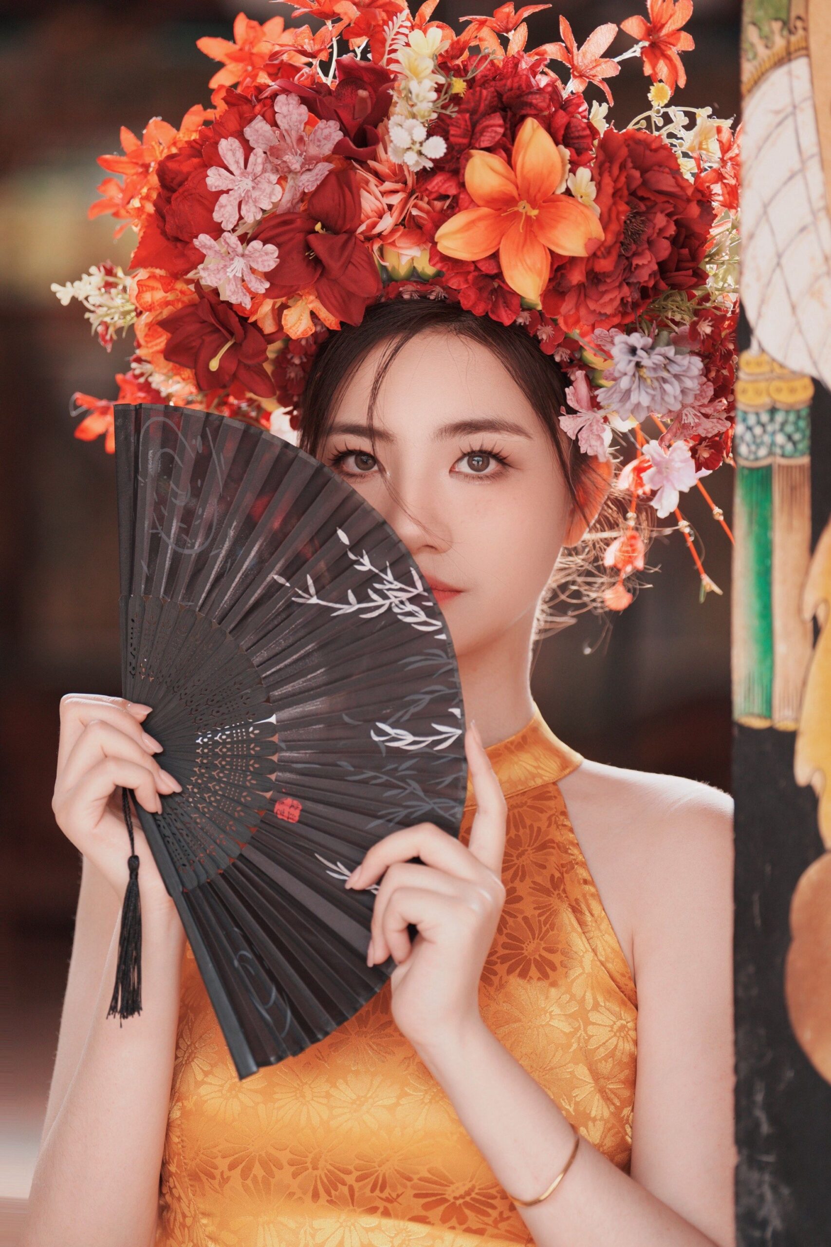 彼女たちが身につけているのは「簪花囲(しんかい)」と呼ばれる、頭を花で円環状に包み込む伝統的な髪飾りだ。発祥は福建省泉州の蟳埔(じんほ)という漁村で、地元の女性たちが代々受け継いできた習俗である。2008年に中国の国家級無形文化遺産に登録されてはいたものの、長らくは地元の人以外にはほとんど知られていない存在だった。